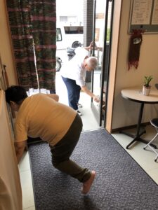 2025/07/23 ゆあマインでは毎週火曜日と金曜日に活動終了後、みんなで掃除をしています。 自分達が使ったテーブルや椅子を消毒液できれいに拭いた後、片づけ、床掃除を行います。 玄関ドアのガラス拭きや下駄箱の掃除もしています。 皆さんが力を合わせて一緒にやるので仲間意識が向上しますね。 ブログ一覧に戻る